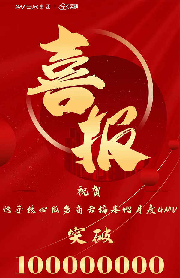 熱烈祝賀云網(wǎng)集團(tuán)旗下快手電商核心服務(wù)商—云播基地10月服務(wù)主播GMV突破1個(gè)億!