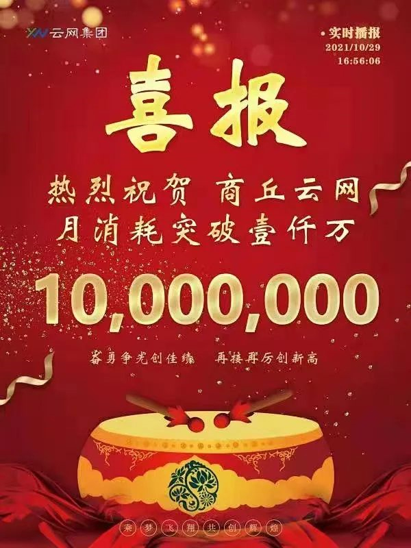 云網(wǎng)集團(tuán)旗下分公司商丘云網(wǎng)傳來喜報(bào),月消耗突破壹仟萬!