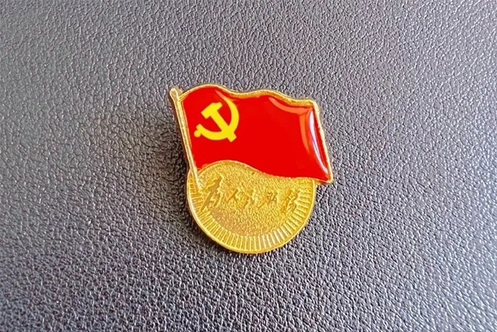 黨員徽章的正面上方為中國共產黨黨旗圖案,